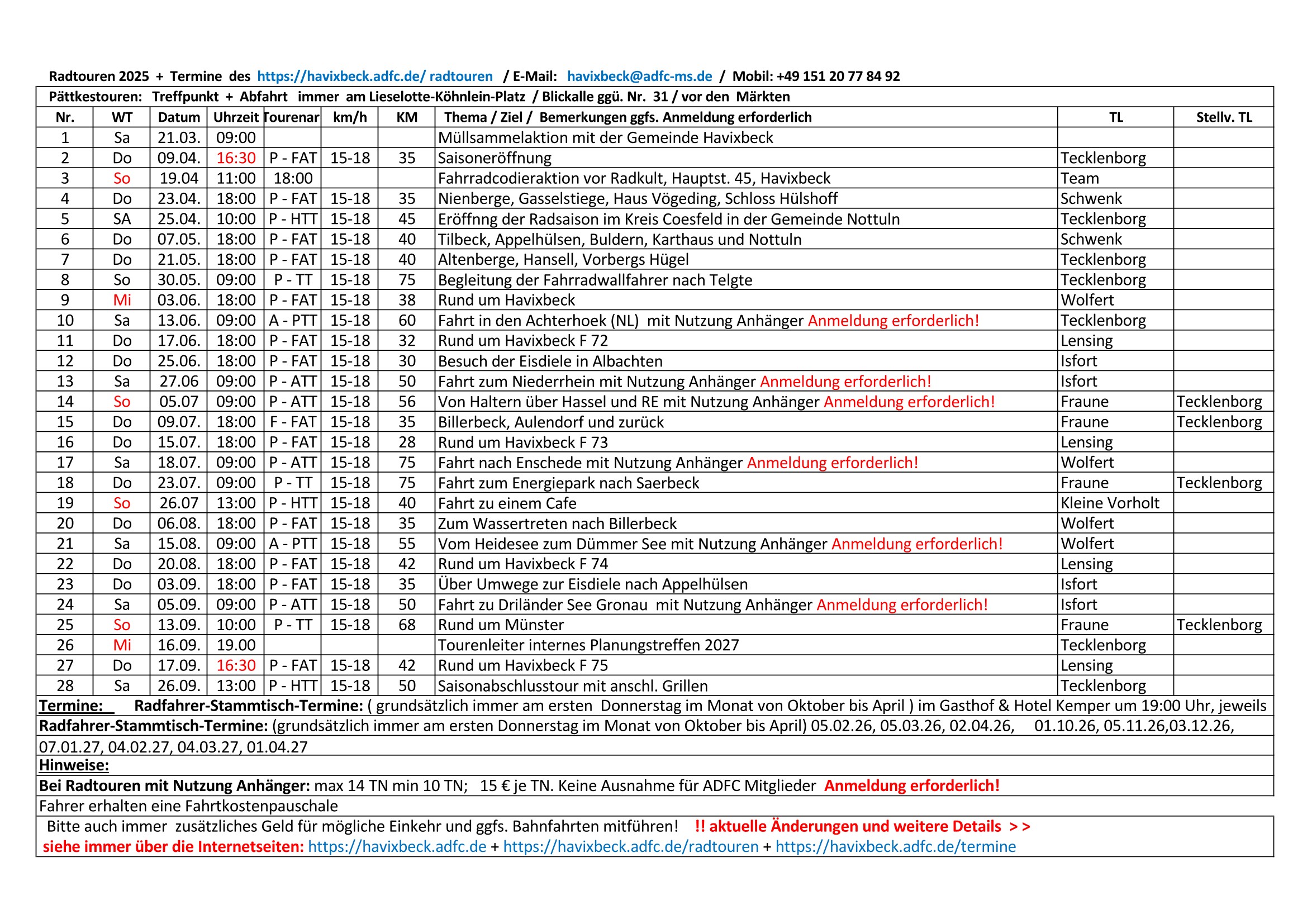 Es werden die GPX-Dateien von den Tourenleitern und Tour-Guides des ADFC Havixbeck übermittelt / zur Veröffentlichung übermittelt / eingestellt. Unsere Saison startete am Donnerstag, den 09.04.2026. Die Dateien werden nach folgendem Muster eingestellt: 2026_04_09_gpx ... 2026_04_09_komoot ... usw.